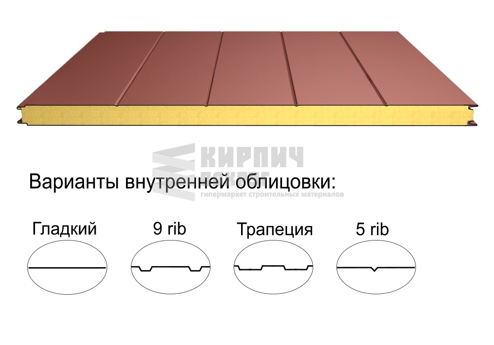 В интернет-магазине "Кирпич Вокруг" Вы можете купить Стеновая трёхслойная сэндвич-панель 5 rib 100мм 1000мм с видимым креплением минеральная вата Полиэстер Доборник в Петрозаводске, а наши специалисты готовы вам помочь с выбором по адресу: , или оказать консультацию по телефону: .