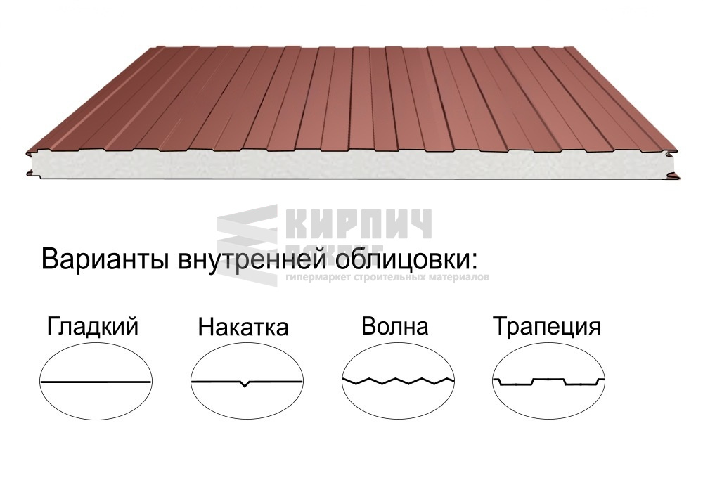 В интернет-магазине "Кирпич Вокруг" Вы можете купить Стеновая трёхслойная сэндвич-панель трапеция 50мм 1190мм с видимым креплением пенополиизоцианурат Полиэстер Металл Профиль в Петрозаводске, а наши специалисты готовы вам помочь с выбором по адресу: , или оказать консультацию по телефону: .